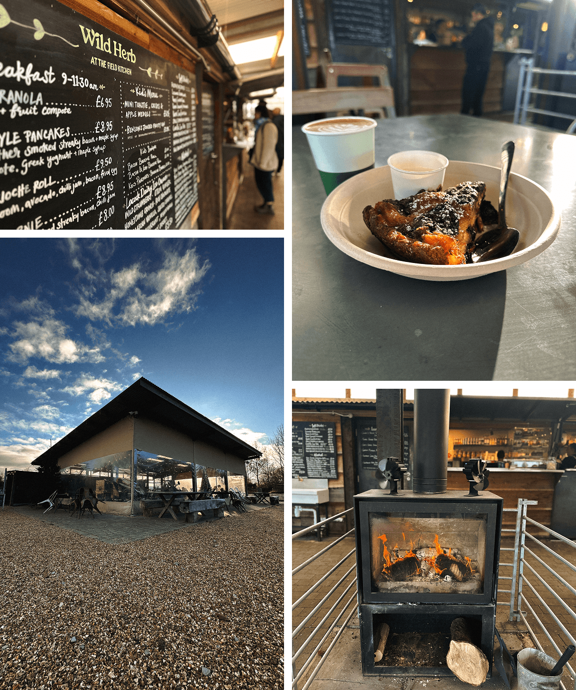 Wild Herb at The Field Kitchen is a fantastic cafe with seating both inside and outside. It serves excellent barista coffee, pastries and deli style lunches. It is open Monday to Friday from 9 to 4 and weekends from 10 to 4. It is a very nice place to hang out after a short morning or afternoon stroll.