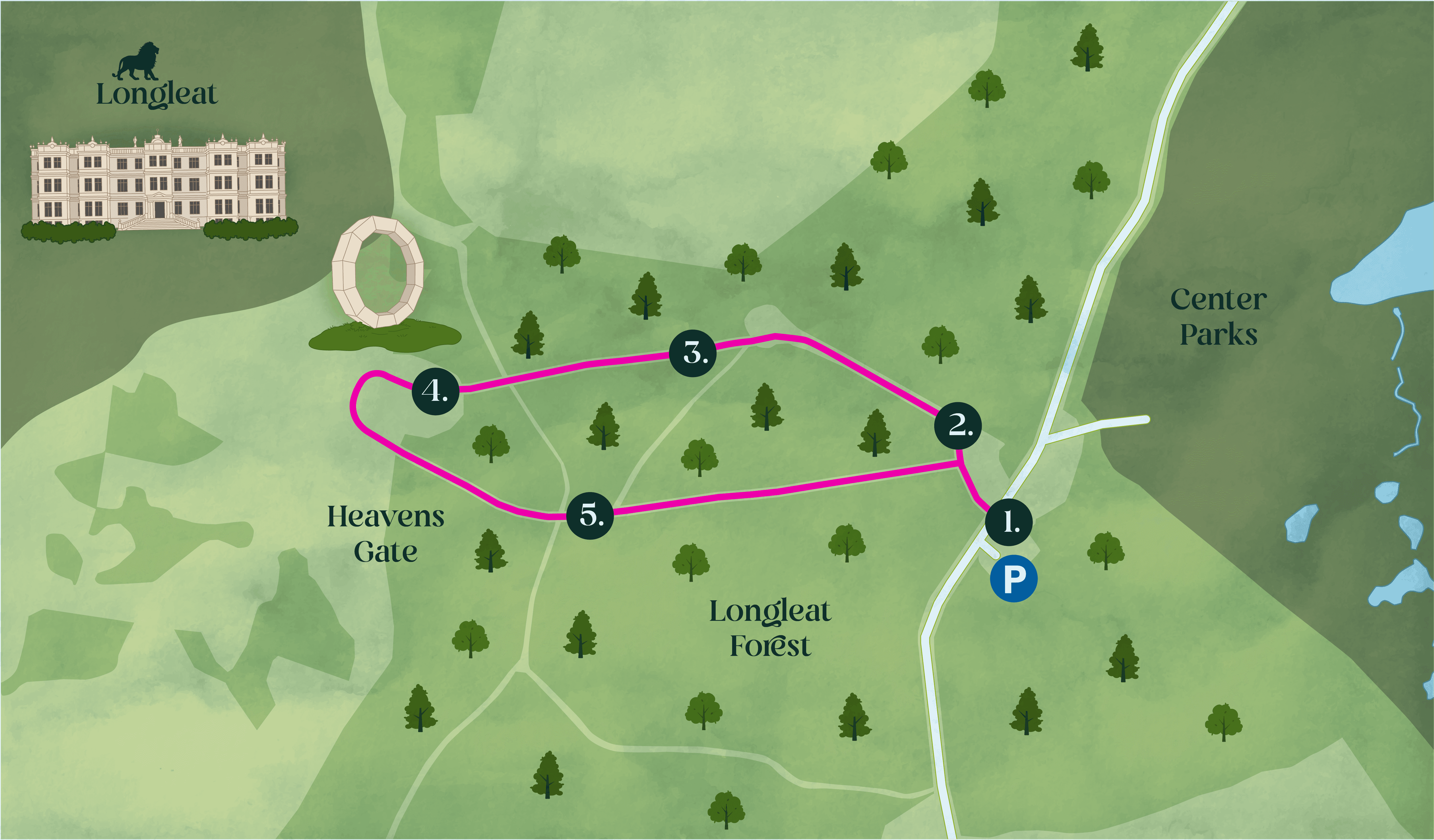 Park in Nockatt Coppice roadside car park and cross carefully to the start of the walk. A wide stone path leads ahead through a stand of silver birch. The path splits almost immediately. Follow the main track as it curves gently to the right.