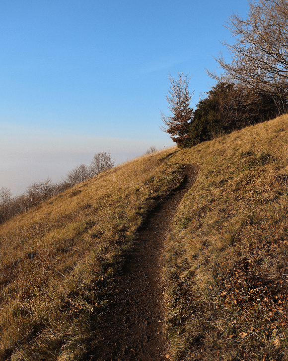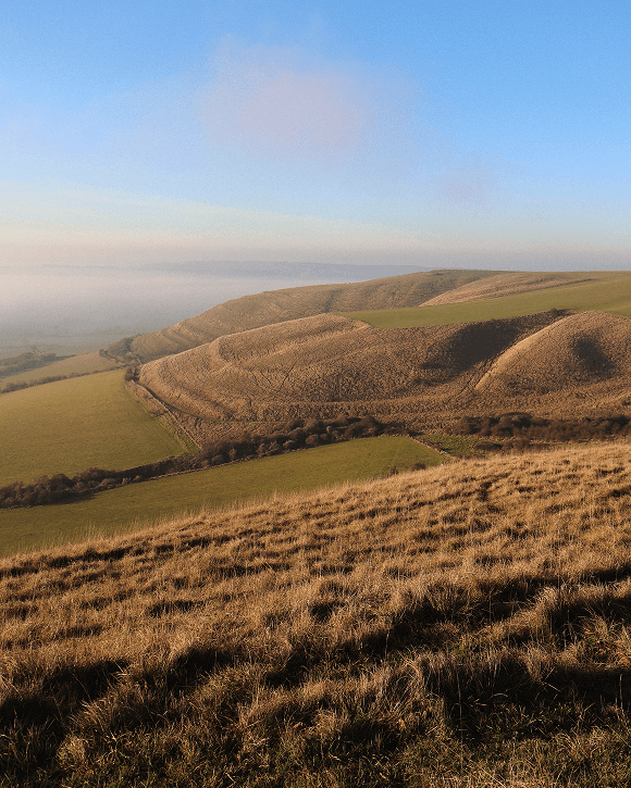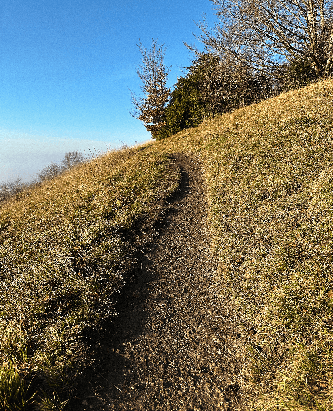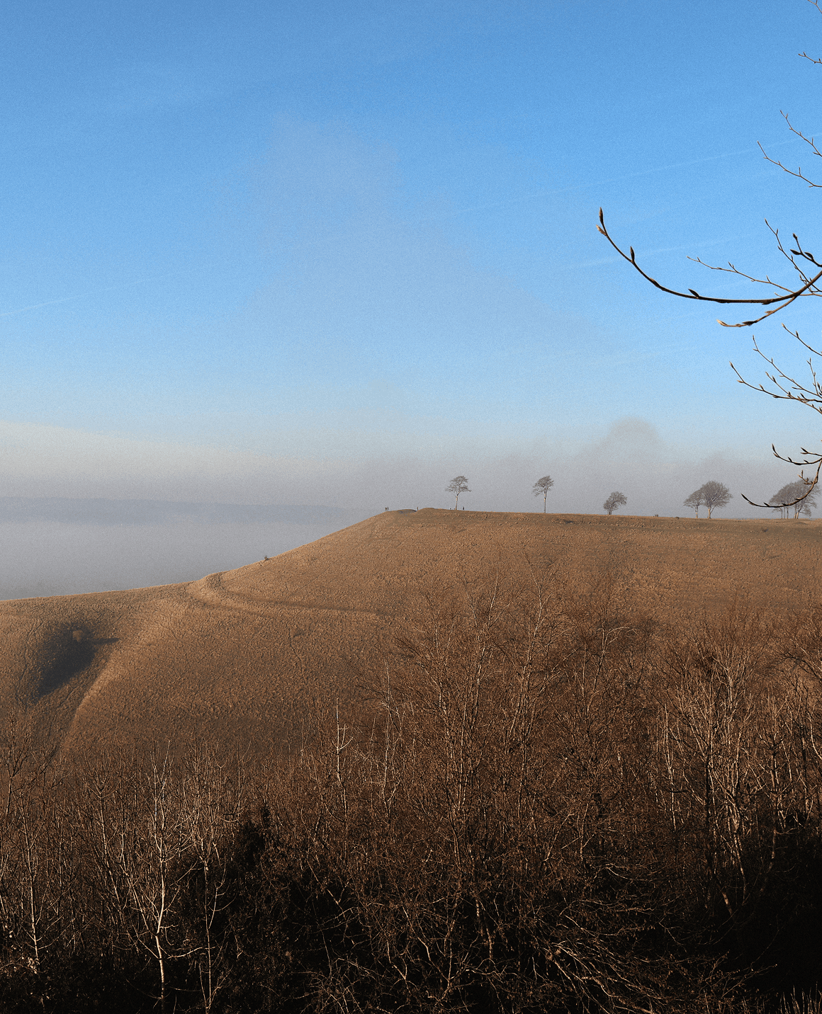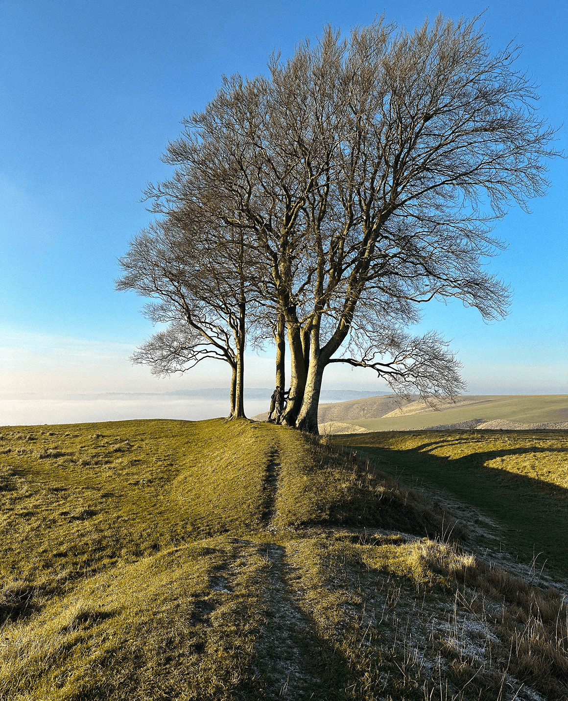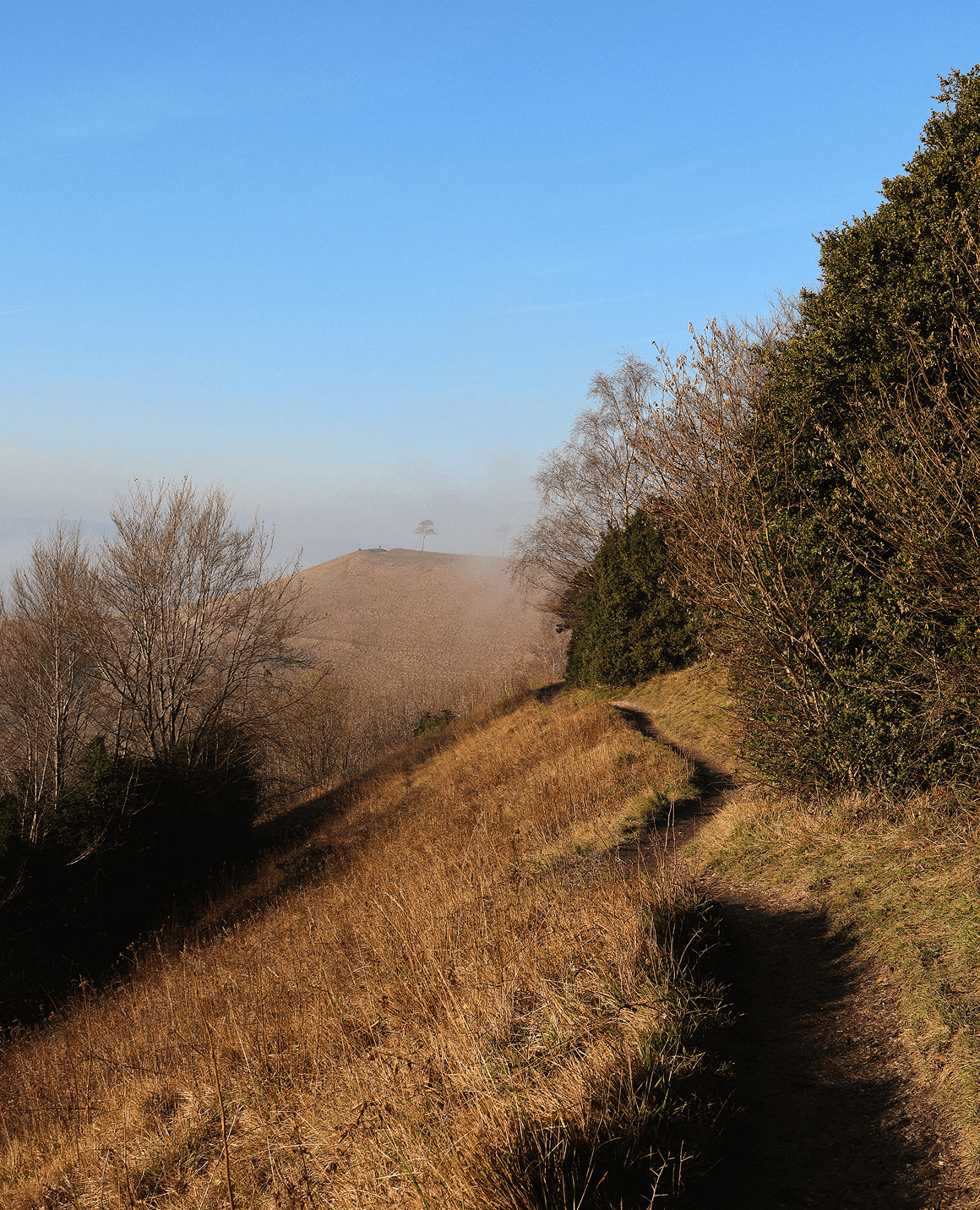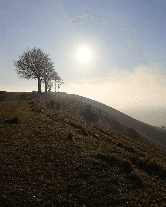 Eventually you will get distant views of Oliver’s Castle forming ahead as a headland dotted with a few windswept trees.