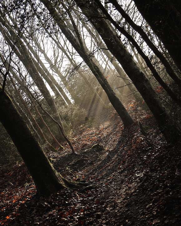 Leipzig Plantation is a small Victorian beech woodland, short but atmospheric, with a well worn track and trees that arch over the path, creating a tunnel like feel. Rope swings hang from a few of the branches and are always a hit with children.