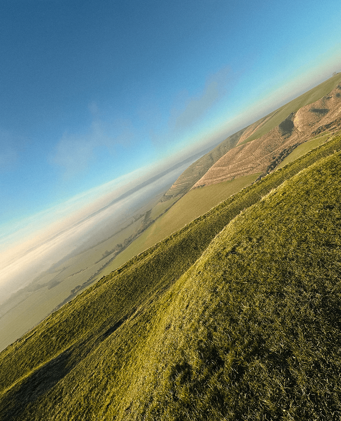 This is an Early Iron Age hillfort dating back to around 500 BC, likely used as a refuge rather than a permanent settlement. The circular earthworks form a raised ridge that you can follow around along the top, offering exceptional views across Wiltshire.