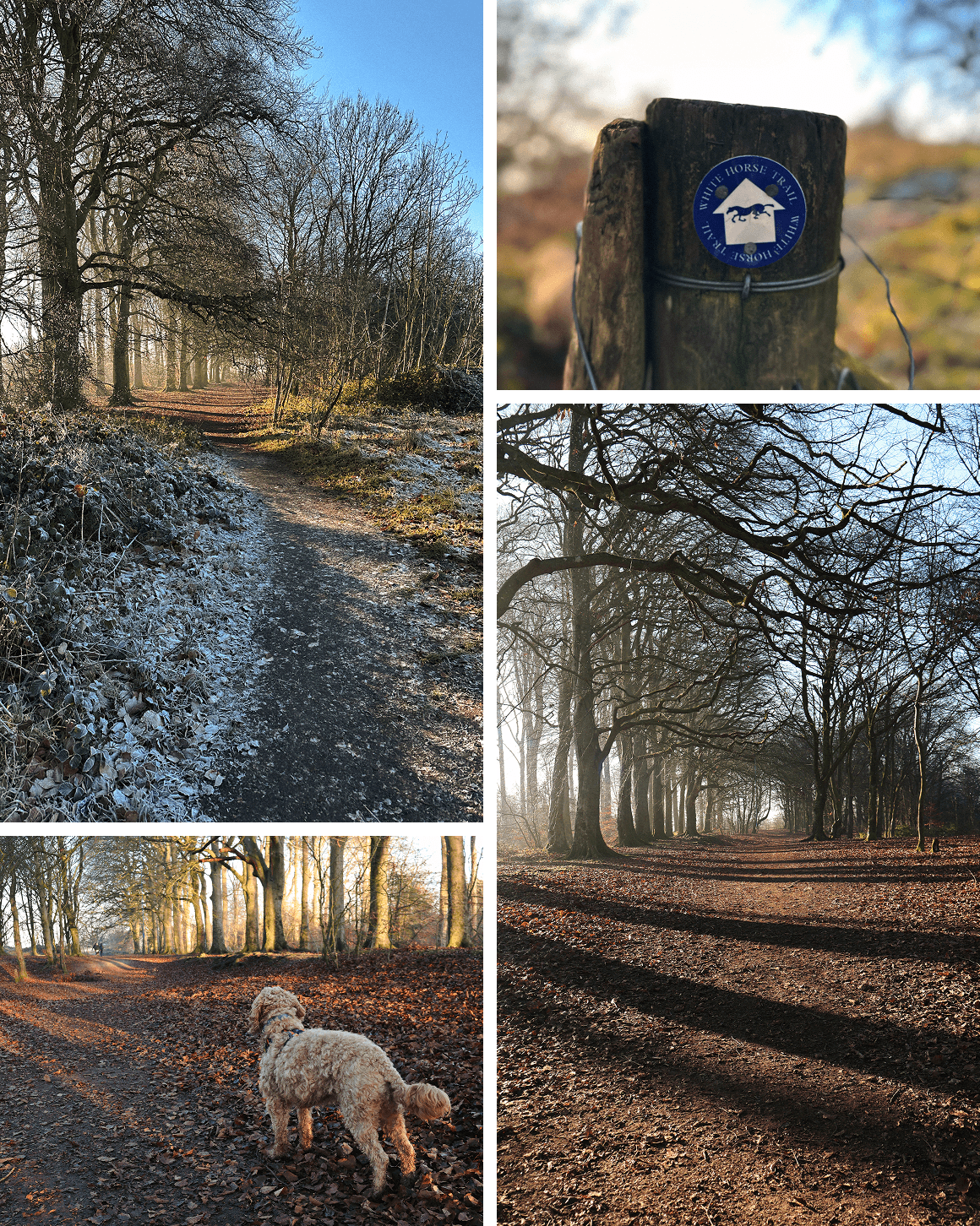 Enter Roundway Hill Covert woods and take the right hand fork and follow the path through the woods with glimpses of the corn field to your right. After a while you reach another fork. Both routes lead to Oliver’s Castle, but our favourite option is to take the left path. This route leads you quietly through the trees before before opening out onto a dramatic viewpoint.